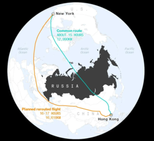 Cathay Pacific Airways Ltd. planea desviar su servicio entre Nueva York y Hong Kong para evitar el espacio aéreo ruso, en lo que sería el